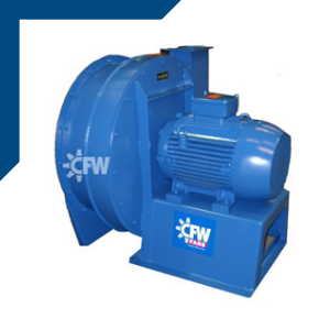 CFW manufactures multi-stage blowers for use where relatively high pressures at low airflow rates are required. The gas or air passes through two or more impellers, being channelled from one impeller’s outlet to another’s inlet. The impellers are radial-bladed or backward curved, depending on the application and duty required.